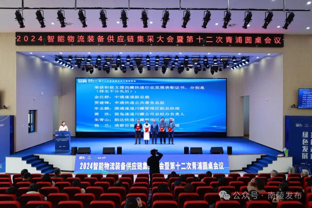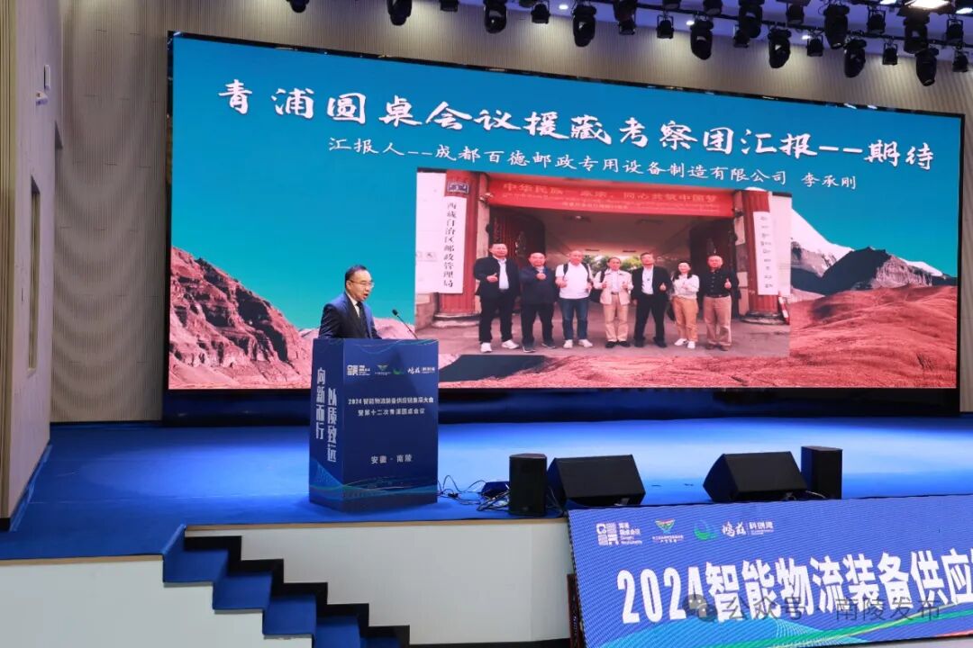 此次会议以“向新而行、以质致远、绿色发展、共创未来”为主题,多位业界知名企业家和专家围绕会议主题进行了精彩的演讲,大家深入剖析行业现状,聚焦前沿发展,分享成功经验,共谋智能物流装备行业的崭新篇章。会上,成都百德邮政专用设备制造有限公司董事长李承刚作《青浦圆桌会议援藏考察团汇报——期待》主题演讲,江苏省邮政管理局原党组书记、局长张水芳作《以新质生产力强劲推动行业高质量发展》主题演讲,国家邮政局政策法规司原一级巡视员靳兵作《邮政快递物流未来发展趋势展望》主题演讲,中国仓储与配送协会副会长王继祥作《中国物流发展底层逻辑的大变局》主题演讲,圆通速递副总裁相峰作《科技赋能 全链创新——高质量发展最后一公里服务》主题演讲,中国邮政集团上海分公司国际业务分公司总经理陈新作《铸建“桥梁”,促进行业共同发展》主题演讲,青岛海威物联科技有限公司副总经理张东辉作《物畅其流,“芯”质提效》主题演讲。