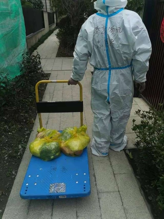 但我们也都知道,一天需要配送上千户居民生活物资这件事情并不是易事。已经在小区隔离四天的王英姣就表示,这几天里,自己已经记不清提了多少袋物品,只知道里面是居民急需的米面粮油等生活必需品;也不清楚每天走了多少步,只记得每天白天除了吃饭时间能稍作休息,其余时间大都在配送的路上……