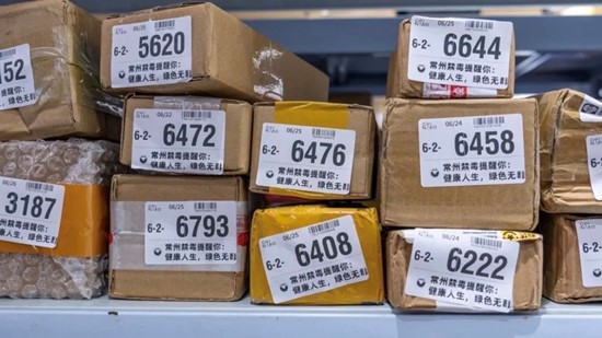 据悉,小菜花禁毒宣传站通过张贴“警企携手合作 共创无毒新北”海报、悬挂“健康人生 绿色无毒”道旗、包裹印有禁毒标语等方式对菜鸟驿站重点打造升级,希望能让更多人在取快递同时还能学习禁毒知识。