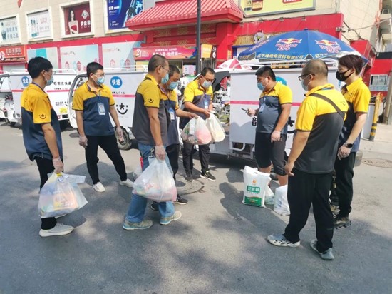 在韵达石家庄北郡分部,分部11名快递员在8月29日完成永辉超市汇君城店民生物资的派送任务后,8月30日又匆匆转战北国仙客来超市北郡店。韵达石家庄北郡分部负责人说,“能为抗疫贡献自己的力量,很自豪,疫情不退,战斗不止。”