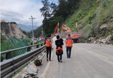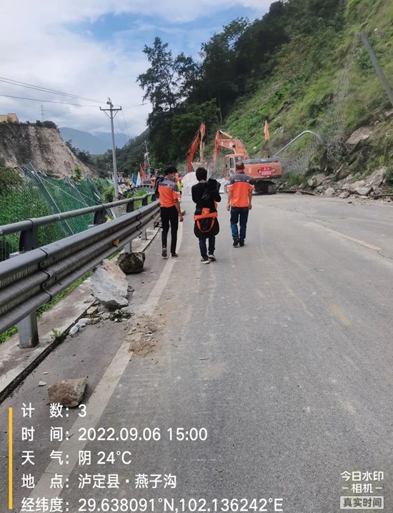 地震发生后的24个小时后,泸定网点的一支救援队出发了,队伍的领头人是网点负责人张文超,他和4名快递员从泸定县城出发前往磨西镇了解受灾站点情况,大家随身都带着一些方便面、矿泉水等应急救援物资。地震后泸定城区情况相对较好,受损情况较轻,9月6日快递还正常派送。但大家最担心的是乡镇的情况,泸定高山多石,乡下的房屋结构不如城中稳定,各乡镇受灾情况比较严重,尤其是磨西镇以及辖内的共和村和蔡阳村,伤亡不明。由于道路受损,张文超一行人只能中途停车徒步十公里左右。一路上看到救援人员,他们都会亲切打招呼,送上一瓶水。越接近目的地,内心越忐忑,但他们还是坚持走到了位于磨西镇的站点。在磨西站点,除建筑物有破损外,三名员工都安全无恙。