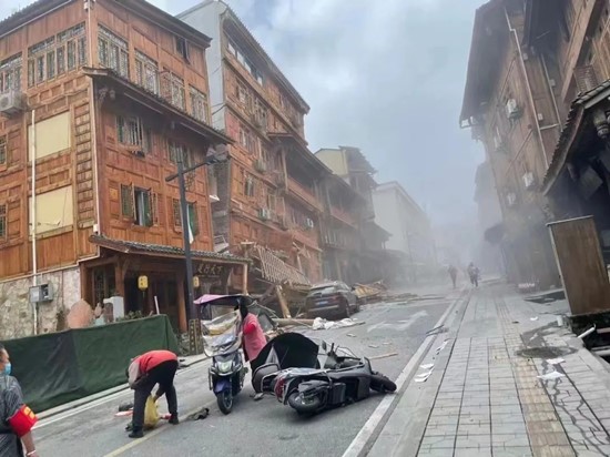 磨西镇站点负责人李健鑫回忆,地震发生时,他们三人都在站点里等待今天从泸定县城送来的快件,“当时就觉得地在晃动、一阵眩晕,我们就赶紧跑到外面空地上,跑出来后看到站点周边的房子外墙已经开裂,我们站点受损程度相对轻一些。”