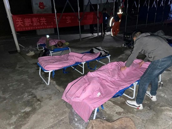 凌晨4点左右,在大家的共同努力下,9车救灾物资顺利搬卸完成。所有搬卸物资的邮政人,随即简单地找个地方睡下。天刚蒙蒙亮,他们又投入到抗震救灾当中去了。