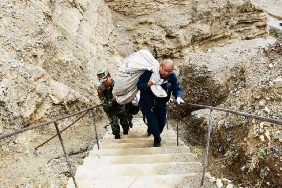 在青藏铁路三岔河特大桥梁守护的武警某部驻地,有一条在陡峭山崖上开凿的被战士们称为“天梯”的小道,水泥台阶共150级,长度达百米,坡度近70度。高海拔下,二十来岁的年轻战士走“天梯”都会头晕目眩,而四十多岁的葛军每次扛着邮包就直接往上爬。他常说,“每当我把报纸和包裹信件送到青藏线驻地官兵手中的时候,我就感觉到自己好像又重新回到了军营,感觉自己依旧是一个兵”。