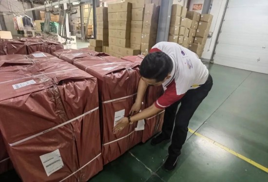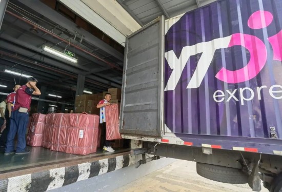 走进雅莹主品牌仓库,挂装区和叠装区的服装摆放得井然有序。当门店或消费者用户下单时,仓库工作人员根据需求单进行配货,用RF枪扫描库位条码进行拣货。随后,发往门店和消费者的衣服分别进入不同的包装区进行组装和封装,其中门店货物件均重量在20~50公斤,一件件由红色编织袋装好的大件快递来到出货口,再交给圆通工作人员进行一系列操作:将货物放置到打包机下进行运输加固,打印快递面单、贴面单、扫描、堆码、装车,准备发运。现场,圆通小哥在每件快递外包装上把快递的面单与雅莹的面单编码一一仔细核对,核对编码的同时,还细致地将快递面单贴在大件快递的宽面上,以防丢失掉落,方便运输和分拣中的数据采集。升级“圆准达”服务,揽转运派及客服全流程快速识别、优先操作“圆通与雅莹从2002年开始合作,一直提供VIP客户服务,今年升级为‘圆准达’产品服务,日均发货量2000件左右。”在仓库现场,圆通雅莹项目组相关负责人介绍,服务以项目组形式展开,圆通派驻专人专车进驻园区,每天上午8时随雅莹工作人员一起上班,先将园区的到港件进行派送,然后留在仓库帮忙理货、贴单,17时30分开始在仓内操作,扫描、打包、封装、贴单、搬运、装车,两辆9.6米的货车整装待发,30分钟后运送到转运中心,进行优先处理。8月至10月是换季服装旺季,每天运送四五个车次。