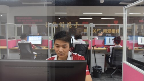 离着赵晨三排座位的,是来自云南的何志明。从13岁那年起,他长了肿瘤的右腿好好停停,最终还是没能逃过残疾的命运。但进入客服中心以后,他适应得很快。