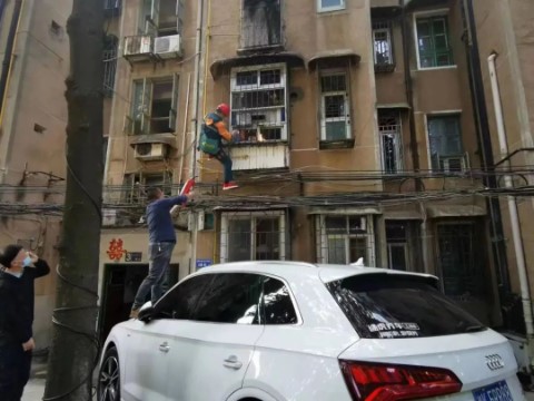情况紧急,虢术高当机立断,不顾个人安危,跳上停在楼下的小车,利用楼房外的管道及防护窗爬到了起火住户的窗户外,并用灭火器砸开了厨房的窗户,及时扑灭了明火,控制住了险情。