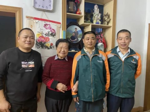 邮政EMS投递员虢术高(右二)与被救老人刘阿姨