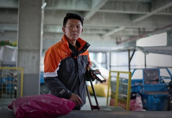 成为励志偶像 他很普通,努力送好每一票快件他也很特别一手拄着7斤重的铁拐一手抱着快递奔走在大街小巷